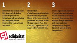 Solidaritat treballarà per a que el compromís de celebrar “O referèndum o referèndum”, aquest cop sí, es compleixi i ho faci amb les condicions esmentades. En cap cas, unes eleccions autonòmiques poden substituir el referèndum promès. A mesura que es vagin coneixent els detalls de la proposta, n’anirem fent la valoració corresponent.