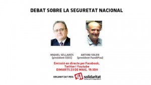 Aquest dimarts, a les 19:30h us convidem al “Debat sobre la Seguretat Nacional”: Amàlia Bosch de Solidaritat moderarà el debat sobre els models de seguretat entre Miquel Sellarès (President del Centre d’Estudis Estratègics de Catalunya i ex-director general de Seguretat Ciutadana de la Generalitat) i Antoni Soler (President de FundiPau).