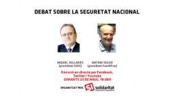Aquest dimarts, a les 19:30h us convidem al "Debat sobre la Seguretat Nacional": Amà lia Bosch de Solidaritat moderarà el debat sobre els models de seguretat entre Miquel Sellarès (President del Centre d'Estudis Estratègics de Catalunya i ex-director general de Seguretat Ciutadana de la Generalitat) i Antoni Soler (President de FundiPau)... Llegir més
